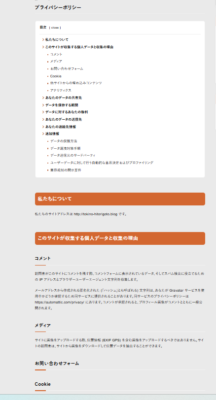 クイックスタートで始めたためか、固定ページにすでに”お問い合わせ”と”プライバシーポリシー”が作成され…